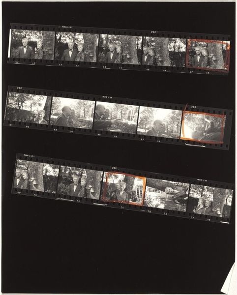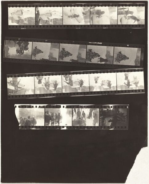 Curator: This is an untitled photograph by Jack Gould, part of the Harvard Art Museums collection, depicting children waiting in line to use a drinking fountain. Editor: The stark, almost ghostly tonality gives it a slightly unsettling feel, doesn't it? The composition, with the line receding into the distance, is quite effective. Curator: Indeed. Knowing the historical context of segregated drinking fountains adds a layer of meaning. The image then speaks to broader issues of access, inequality, and the lived experience of children in that era. Editor: The formal arrangement of the children, their postures... it's almost a study in anticipation. The use of light and shadow reinforces this sense of delayed gratification. Curator: Absolutely, and that juxtaposition of the individual thirst being quenched with the communal patience underscores the power dynamics at play. Editor: I’m struck by how the inverted palette highlights the formal elements while obscuring the subjects' humanity. It gives one pause. Curator: Precisely. The photograph invites us to reflect on the systems that shape our access to even the most basic resources.