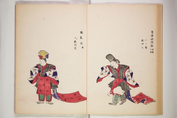 Editor: This woodblock print, "Illustrated Book of Professions with KyÅka" by Utagawa Hiroshige, shows people at work. I notice the figures' attire and tools; they seem so specific. What do you make of the depiction of labor here? Curator: It's fascinating how Hiroshige utilizes woodblock printing, traditionally seen as craft, to depict laborers. The print’s value lies not just in its aesthetic appeal but also as a record of social roles and material culture. How does this challenge your understanding of 'high' art versus craft? Editor: That makes me think about how we often overlook the actual making and consumption of art. Thanks, I'll definitely consider that. Curator: Indeed, understanding the means of production enriches our appreciation of the final piece.