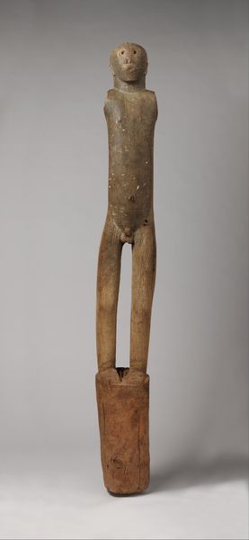 Editor: This is a striking piece, a Male Ci Wara Crest from a Masquerade Ensemble, created by a Bamana artist between 1870 and 1935. It’s carved from wood and now resides at the Metropolitan Museum of Art. I’m really drawn to how elongated and stylized it is, and the surface texture created by the carving. How do we interpret an object like this through a materialist lens? Curator: Looking at the Ci Wara crest, the first thing that strikes me is the process of its creation. The carving itself—what tools were used? Where did this wood come from? The labor embedded in extracting and shaping the raw material, and the cultural knowledge required, become central to our understanding. How might the availability of specific wood types, or trade routes for tools, have impacted its form? Editor: That’s fascinating. So it’s not just about the finished object, but tracing its origins and the human effort involved? Curator: Exactly. And then think about its original context: a masquerade ensemble. This wasn't created as a standalone sculpture for contemplation, but as part of a performance inextricably linked to Bamana agricultural practices and social structures. How does its function as a masquerade component, meant to be worn and danced, change how we view it versus its display in a museum? Editor: So, we consider the masquerade’s role in celebrating agricultural success and social harmony. And how does that affect its consumption as an art object today, displayed far from its original setting? Curator: Precisely. By focusing on the labor, the materials, and the original social context, we can move beyond simply admiring its aesthetic qualities. The commodification of this object—removed from its community and placed in a Western museum—raises complex questions about cultural appropriation and the objectification of ritual practices. What is gained, and what is irrevocably lost, in this translation? Editor: That gives me a whole new perspective to appreciate not only the artistry but also its historical journey and social implications. Curator: Indeed. Thinking about art through a materialist framework reveals the complex web of relations—labor, resources, cultural meanings—that shape its very existence.