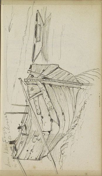 Johannes Tavenraat made this pencil drawing, Wagenwiel, at an unknown date. The immediacy of the marks suggests a quick study, capturing the textures and structural forms of a wagon wheel and adjacent stone or wooden structure. Tavenraat’s choice of pencil allows for a remarkable range of tones, from the faintest suggestion of line to deep, shadowed areas. Look closely at the wheel itself. See how the artist used hatching and cross-hatching to define the roundness of the spokes, and the solid weight of the hub. The drawing conveys a sense of the material's inherent qualities. Consider the social context implied by the subject matter. Wagons were essential for transportation and trade, and their wheels were skillfully crafted objects. Tavenraat elevates this everyday subject through careful observation and rendering, reminding us that the division between fine art and craft is not as clear as we might think. Ultimately, it is through attention to materials, making, and context that we gain a deeper understanding of this artwork's meaning.