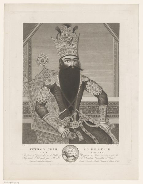 This is Luigi Pesce’s photographic reproduction of a painting of Fath-Ali Shah, some time between 1818 and 1891. The original painting belonged to the uncle of the king. Paintings of rulers like this served as powerful tools for constructing and maintaining authority. Here, Fath-Ali Shah is shown in the trappings of power: his garments are richly decorated, his crown is bejeweled, and he holds what appears to be a sword. These elements tell us much about how the Shah and his circle wished to be seen: wealthy, refined, and powerful. What does it mean to reproduce this image photographically? Photography allowed for mass production of the Shah’s image and his power, so the image could become a symbol of Persian identity during a time of political change and Western intervention. Consider how the image, originally a unique painting, becomes a multiple, available to many. What happens to its aura? How might the image of a powerful leader function differently when endlessly reproduced?