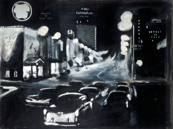 Curator: Alfred Freddy Krupa's "Night on the River Kupa," painted in 2012 using acrylics, is our focus. Editor: Oof, that’s dark. It feels like peering into the abyss – beautiful, but a little intimidating. A midnight swim kind of vibe, you know? Curator: Exactly! It masterfully captures that feeling. Krupa's expressionistic style reduces the city to mere flickers of light, abstracting the experience of the place. This aligns it with broader trends in representing urban spaces, away from grand vistas towards emotional responses. Editor: And the rough brushstrokes add to that frantic energy, like the water's shimmering surface is trying to escape the darkness. I keep wanting to smooth it out with my finger but, in doing that, you’d destroy the entire thing. What could have made Krupa embrace this approach? Was he exploring other ways that painting could become visceral or emotionally powerful? Curator: His connection to the avant-garde "New European Painting" movement after the millennium played a key role. It questioned painting’s societal relevance but simultaneously revitalized its potential, particularly as a means of expressing inner experience against a rapidly changing political background after the Cold War. The cityscape then becomes almost secondary. Editor: Right, the actual 'place' blurs, doesn’t it? It feels like *any* industrialized waterside could be seen this way, which then echoes those neo-expressionist sentiments. Curator: Precisely. These aren't simple landscape paintings. The dark palette emphasizes a more critical vision of post-industrial spaces and perhaps anxieties about global change, rendered intimately through his signature abstract style. Editor: Knowing all that… makes you want to sit with it, doesn’t it? This small picture does something big. What I originally perceived as 'darkness' reads now like resistance or critical observation that you really have to lean into to understand. It's much more nuanced. Curator: And there's always something fascinating about viewing how broader cultural and historical events are filtered through an individual artistic perspective.