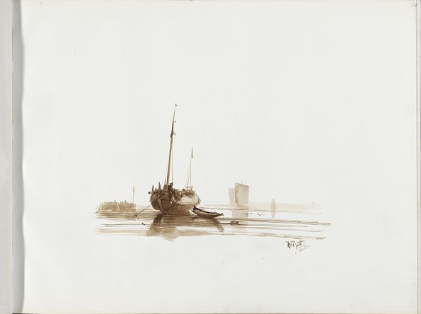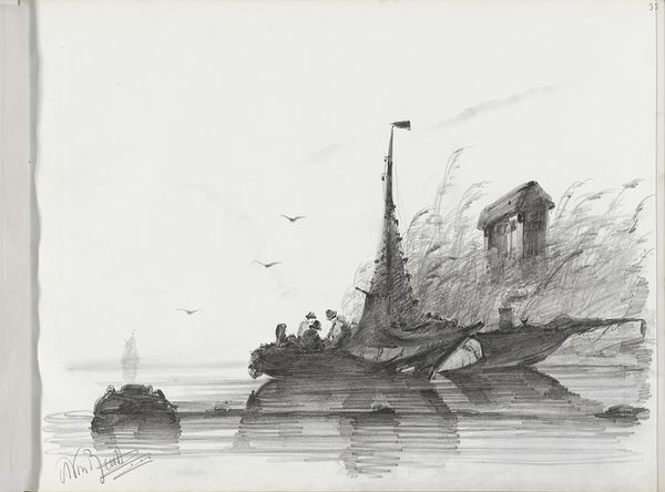 Albertus van Beest made this drawing of a fishing boat with figures on the water using pen in the Netherlands. Van Beest presents a romanticized view of Dutch maritime life during the 19th century. The detailed rendering of the ship amidst the turbulent sea evokes the struggles of the working class. The Dutch Golden Age, a period of immense maritime power and artistic flourishing, laid the groundwork for how Dutch artists portrayed their nation's relationship with the sea. Institutions like the Dutch Royal Academy played a pivotal role in shaping artistic standards. This drawing reflects the period's growing interest in representing everyday life, even as it navigates complex social issues. To fully understand this work, we can consult maritime archives, historical records, and art exhibition catalogs. We discover, then, how art is a mirror reflecting not just images, but also the underlying structures of society.
