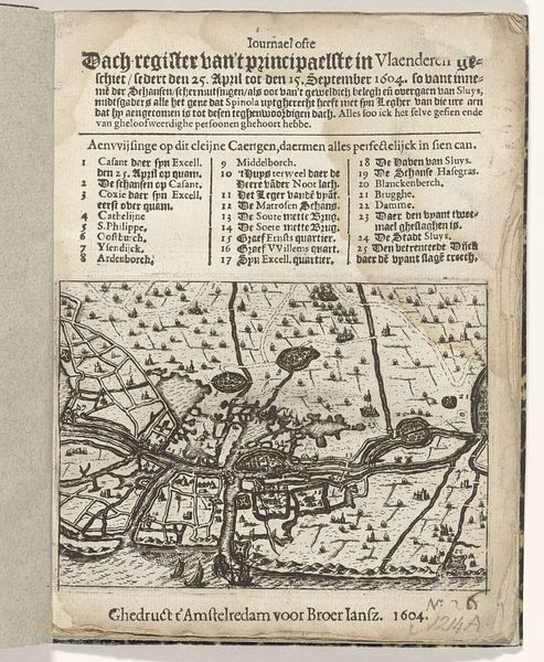 This print, made in 1603 by an anonymous artist, depicts the Siege of Ostend. The medium is likely etching or engraving, a process involving incising lines into a metal plate, inking it, and then pressing it onto paper. This kind of printmaking allowed for the mass production of images, playing a crucial role in disseminating information during times of conflict. The sharp lines and detailed rendering showcase the skilled labor involved in this process, where artisans meticulously translated real-world events into reproducible images. The stark contrast and graphic quality lend a sense of immediacy to the depicted battle, turning news into a commodity. Consider how the act of translating a military campaign into a set of repeatable lines abstracts and commodifies the event. Rather than a unique work of art, this print becomes a piece of political communication, distributed for consumption. It reminds us that images, even those depicting war, are always shaped by the means of their production, carrying social and political meaning far beyond their literal depiction.