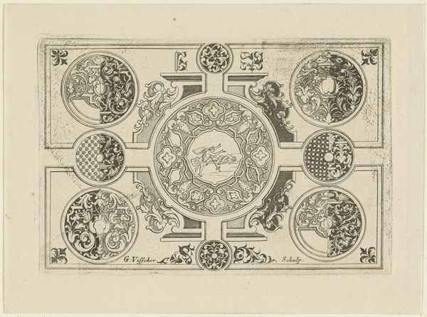 This ceiling design with a sunken rectangle and busts was created anonymously. Architectural drawings like this one were fundamental in shaping perceptions of power and status during periods when design and ornamentation reflected social hierarchies. The symmetry and classical motifs speak to the aspirations of those who commissioned such designs—to align themselves with historical notions of grandeur, authority, and taste. However, these images also prompt us to consider who was included in these visions of power, and who was excluded. Were women, people of color, or lower social classes represented in these spaces or in the artistic process? Looking at this work, consider the silent narratives embedded in the design: the stories of artisans, patrons, and the countless unnamed individuals whose lives were shaped by the spaces these designs envisioned. How do these historical designs influence our contemporary understanding of space, power, and identity?