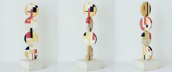 Katarzyna Kobro made this Spatial Composition Nr. 6 with paint on metal and wood, but when is anyone’s guess. There’s something so elegant about the economy of means, the way she uses primary colours against grayscale tones. It speaks to an understanding of artmaking as a process of distillation. Look at the surface texture. The paint is thin, allowing the materiality of the wood and metal to shine through. The grey ribbon winds through the sculpture so you can see how it catches the light. I like how Kobro lets the physical qualities of the medium come forward; the eye is invited to complete the work. The blue base anchors it all. Kobro was a contemporary of Mondrian, and you can see some shared affinities. But where Mondrian seems very controlled, this has a kind of joyous, anarchic energy to it. It embraces multiple interpretations, allowing viewers to bring their own experiences to the work.