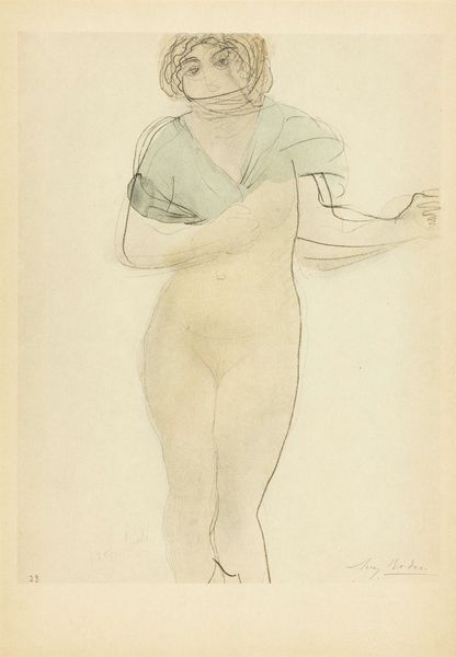 Curator: There’s something so vulnerable about this figure. It’s like a glimpse into a private moment. Editor: The Harvard Art Museums hold this watercolor attributed to an imitator of Auguste Rodin. It's called “Oriental Dancer with Legs Crossed.” I think the loose brushstrokes really amplify the feeling of intimacy you picked up on. Curator: Yes! It is incredibly delicate, almost like it was captured in a dream. But the title hints at the exoticism often projected onto the "Orient" in Western art. Editor: Absolutely. We can't ignore the problematic history of representing non-Western cultures. But the work's incompleteness also resists a solid definition. It prompts questions about our own projections. Curator: True, it dances between being a study and an assertion, doesn’t it? I find that ambiguity quite powerful. Editor: Me too; it invites us to really grapple with the act of seeing, and the politics of representation.