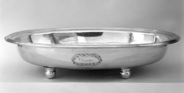 Curator: At first glance, I'm struck by the pure, gleaming stillness of it. A silver surface reflecting back at the world. Editor: Indeed. What we have here is a silver stand, believed to have been crafted between 1738 and 1750, and it is attributed to Friedrich Schwestermuller II. It resides in the collection of the Metropolitan Museum of Art. Curator: Schwestermuller’s “Stand” exudes an almost reverential quiet, wouldn't you agree? The craftsmanship is impeccable, but the reflective surfaces create this meditative sense, making it about the contents—whatever was served from it-- rather than just being a functional object. Editor: I find myself focusing on the subtle Rococo curves of the piece. The feet, those almost paw-like supports, lend it a sense of groundedness, yet there is also this ethereal lightness that is conveyed through the lustrous silver surface. What do you suppose might have sat upon such a piece? Curator: Knowing the period, one could certainly imagine sugary delicacies – comfits or perhaps marzipan fruits, presented to guests as symbols of wealth and abundance. The act of offering sweets was not simply about satisfying hunger, but also about demonstrating social status and cultivating relationships. Silver servingware elevates everyday rituals to ceremonies laden with significance. It mirrors back the aspirations of those who possessed it. Editor: So, beyond the elegant design and material, there is also a deep narrative about power and status being played out, visualized through ornamentation and objects. What I consider more formally is the balance. Even though it appears symmetrical, the light plays with the subtle curves creating pockets of interest. Curator: I agree, that asymmetry hints that reality never quite reflects the idealized form and also a degree of life and vitality to the piece as a result, suggesting growth. To see it here is a unique encounter—silver as a cultural artifact becomes something so still it can now reflect its origin. Editor: Yes, there is an art that comes into being in objects like this “Stand,” the craftsmanship speaks volumes about societal value judgments, but even more I'm captured by how it sits now as its form allows me to observe from so many angles.