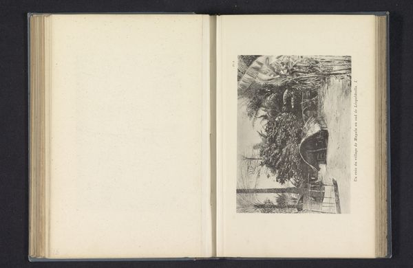 Curator: What strikes me immediately about this old photograph is the texture – everything looks a bit hazy, dreamlike almost. Editor: Indeed. The print, called "Woningen te Gongo", translates to Houses in Gongo and it’s attributed to Franz Thonner, around 1896. This landscape, though humble, resonates deeply. It pulls you in doesn't it? Curator: Absolutely! The buildings are nestled so closely with the nature surrounding them. Look how they practically dissolve into the dense foliage. I wonder about the dwellings. Are they truly homes, community centers, or does the symbol represent safety and unity for the artist? Editor: That contrast fascinates me. Note how the print renders depth. The shadows could equally stand in for sunlight creating warmth and security; at the same time, it emphasizes vulnerability and smallness when considering what else thrives within these landscapes. Curator: It definitely evokes that. Like, what is the real purpose of this settlement, considering that its symbolism suggests much about this location or culture during the 1890s? Editor: Right – what kind of collective experiences are we seeing hints of here? In the homes, but also this larger idea we’re invited to participate in. And, for me, this sense of participating suggests that this photographer might want to reveal something about our relationship to domesticity...to civilization, maybe? Curator: I see what you mean, and, again, it takes me back to thinking of my place, our place in the scheme of it all and to ponder, just what do those buildings contain? What do these settings enable? Editor: Perhaps it is precisely that ambiguousness that continues to speak so vividly to viewers, inviting a multitude of associations with past, present, or hoped-for futures? Thank you for this observation; I will definitely think more about those open avenues.