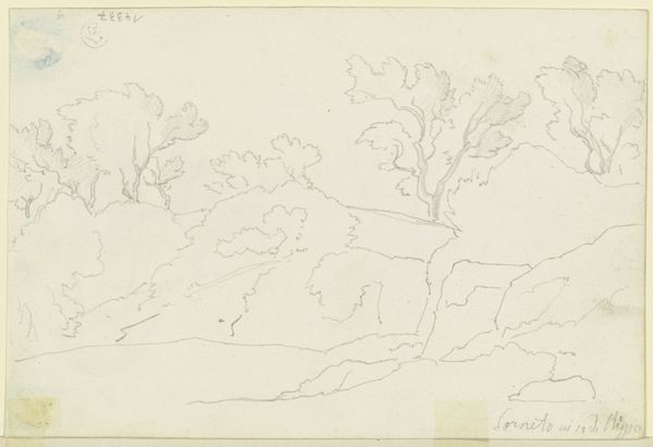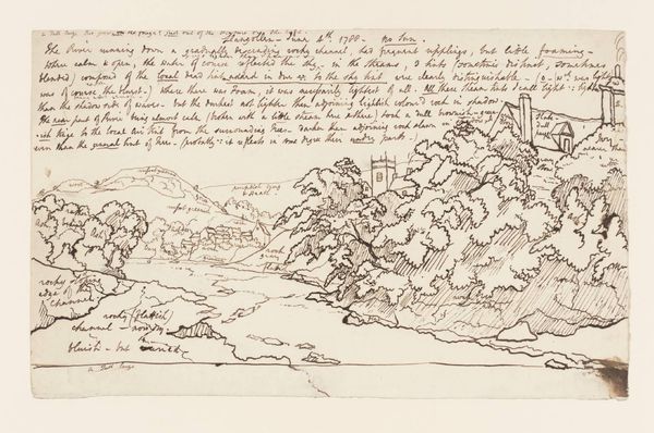 Curator: Joseph Wright of Derby, born in 1734, sketched this work, "Lower End of Windermere," using graphite on paper. It resides in the Tate Collections. Editor: It feels so immediate, almost like a quick note on a grand landscape. The mountain looming behind the trees really captures the sublime. Curator: Wright was fascinated by the play of light and shadow, and this sketch hints at that interest. He was exploring the relationship between nature and humanity. Editor: Looking at the delicate lines, I wonder if this scene resonated with ideas of the picturesque - that harmonious, visually appealing arrangement that reflects social ideals. Curator: Absolutely, and the symbolism of nature as both a source of beauty and potential danger was being debated in light of the industrial revolution. Wright was a thinker. Editor: The cultural memory embedded in this scene - the Romantic appreciation of nature, the emerging sense of environmental consciousness - it all begins to coalesce here. Curator: It's a reminder that even a quick sketch can hold layers of meaning. Editor: Indeed, seeing the landscape evolve through an artist's eye.