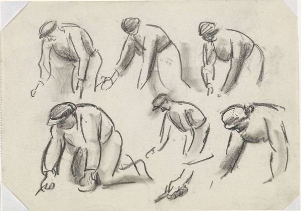 Jozef Israëls created this pencil drawing titled "Bramen (?) zoekende kinderen" which roughly translates to "Children Searching for Blackberries," at an unknown date. Israëls was a leading figure in the Hague School, a group of Dutch realist painters who often depicted the lives of the working class. Here, Israëls sketches several figures, likely children, in various states of labor, bent over and searching. The loose lines and unfinished quality of the sketch evoke a sense of immediacy, as if capturing a fleeting moment. Israëls' work often focused on the dignity and hardship of the poor, reflecting the social concerns of his time. Instead of idyllic scenes, he captured the raw realities of labor and poverty. In this drawing, the obscured faces and hunched postures of the children emphasize their vulnerability and the physical demands placed upon them. It’s a poignant reminder of the social inequalities that defined 19th-century Europe.
