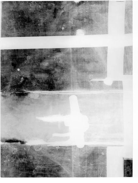 Curator: Here we have an X-radiograph of "Man with a Beard," attributed to Rembrandt, an image that offers a glimpse beneath the surface of the visible artwork. Editor: It’s ghostly. Almost like looking at the repressed memories of a painting. The harsh light and shadow feel severe, even haunting. Curator: Absolutely. X-radiography uses X-rays to penetrate the layers of paint, revealing hidden details, underdrawings, or alterations made by the artist during the painting process. Editor: It speaks to the power dynamics inherent in image creation, and whose stories are prioritized or erased in the final product, doesn't it? It hints at a silent dialogue. Curator: Indeed. It allows us to trace the evolution of an image and contemplate the artist's intentions. Editor: Seeing the skeleton of a painting prompts reflections on the layers of history, both artistic and cultural, embedded within it. What’s preserved, what’s discarded, and why? Curator: Exactly. It is a compelling interplay between science and art, isn't it? Editor: Yes, and it challenges our notions of fixed artistic meaning.