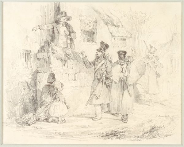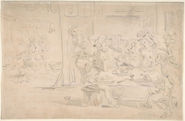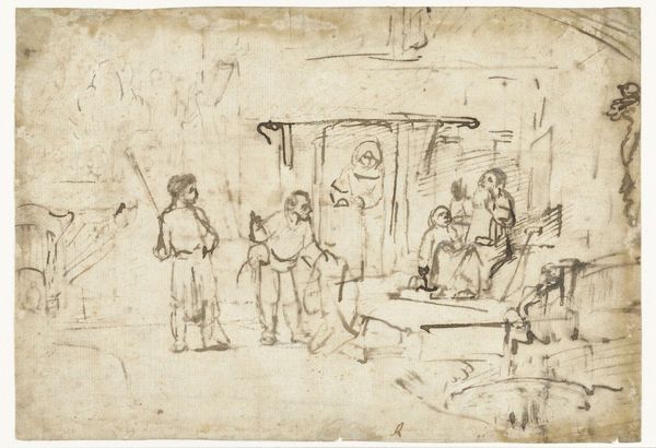Editor: Here we have James Ensor’s drawing, “In Front of the Alcalde.” The quick sketch has a certain anxiousness, a nervous energy to the marks. What historical context might be relevant for understanding this drawing? Curator: It's important to remember that Ensor often critiqued social structures and power dynamics within Belgian society. Knowing this, what strikes you about the interaction between the people and the Alcalde, given the visible differences in their situations? Editor: Well, the figures in front seem rather frantic, maybe pleading, while those behind the desk are much more composed and seemingly indifferent. Curator: Precisely. Consider the role of the alcalde. He represents local authority. Ensor is likely commenting on the inaccessibility or perhaps the perceived unfairness of this authority, as viewed by the common people. This image raises questions about power, representation, and social justice, wouldn't you say? Editor: I do. So, is Ensor positioning art as a form of social critique here? Is he using the visual space to give a voice to the voiceless? Curator: Yes, and not just in this particular piece. Ensor consistently used his art to explore tensions between the individual and the collective, often focusing on how societal structures can either elevate or oppress individuals. He challenges us to critically assess the systems of power that govern our lives and invites empathy for the underrepresented. Editor: That's really enlightening! I never would have picked up on that from just the visual itself. Thinking about art this way opens a lot of new avenues for interpretation. Curator: Exactly. Understanding the historical and social currents helps us decode the deeper meanings embedded within the art.