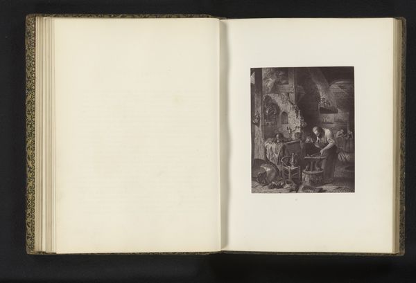 This is a photomechanical print of a drawing, by an anonymous artist, depicting four men around a table. With its detailed lines and attention to the characters’ distinct expressions, the image offers us a glimpse into a particular social world. The scene likely captures a moment in 19th-century Europe, given the clothing and interior details. The gathering might depict intellectuals, members of a political group, or simply friends sharing a meal or drinks. Without knowing its original context, we can only speculate on the social dynamics at play. The institutional history of reproductive media also offers a way into the image. Understanding the social context of such an image requires delving into archives, historical documents, and studies of 19th-century European culture. By exploring these resources, we can uncover the social and cultural forces that shaped the artist's vision, and the role this image played in shaping social life.
