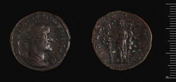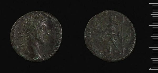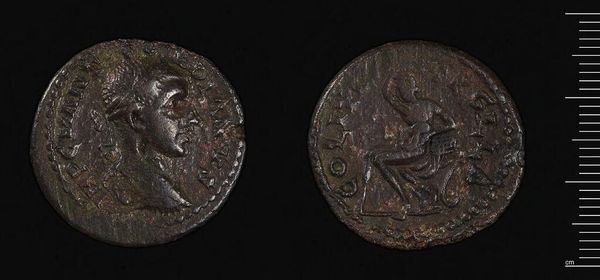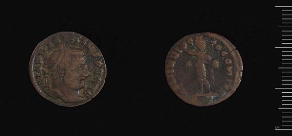 Editor: Here we have a Follis of Constantius Chlorus, minted in Ticinum. It's a weighty little thing. It's incredible to think someone actually used this as currency. How do you interpret a piece like this, something so utilitarian, now displayed as art? Curator: Well, utilitarian yes, but also propaganda, darling! See how his portrait practically screams "authority"? Each scratch and imperfection tells a silent story. It’s like holding a tiny, tarnished mirror to the past. What do you think it whispers to you? Editor: A sense of connection, maybe. That even across millennia, we share this need for leaders, for systems… I guess. Curator: Precisely. And doesn't it also hint at the impermanence of power, all that grandeur reduced to something you can hold in your palm? Food for thought, eh?