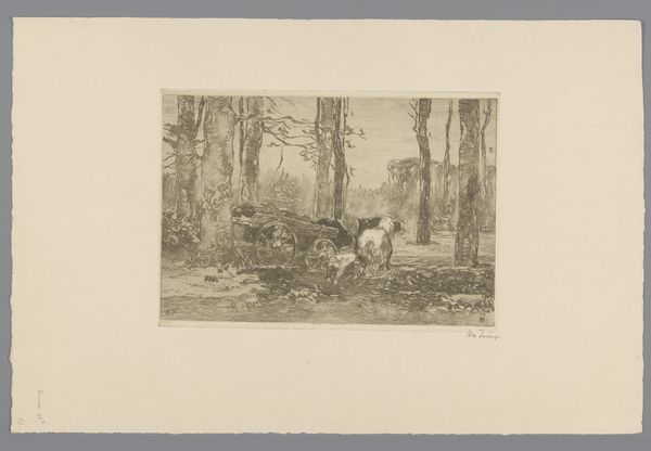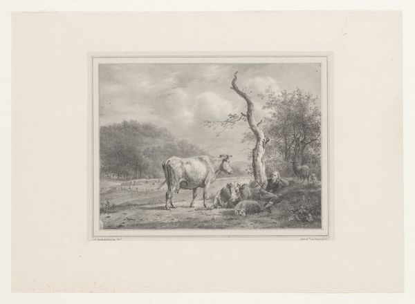 This landscape with sheep and goats was made by Adolf Carel Nunnink, likely in the mid-19th century. It presents a pastoral scene, seemingly simple, yet rich with symbolism. The sheep, often associated with gentleness and innocence, evoke Christian iconography, reminiscent of Christ as the Good Shepherd, a motif stretching back to early Christian art and the catacombs. But consider also the goat, a creature of different symbolic weight, often linked to more earthly, even darker forces. This juxtaposition brings to mind the allegorical separation of the sheep and the goats, representing the division between the saved and the damned. These animals grazing peacefully carry echoes of ancient sacrificial rites, resurfacing through collective memory. Here, the landscape itself becomes a stage where these age-old themes play out, engaging the viewer's subconscious. The image is not just a peaceful scene, but a deep dive into the cultural memory, revealing how symbols persist, transform, and continue to affect our perceptions.