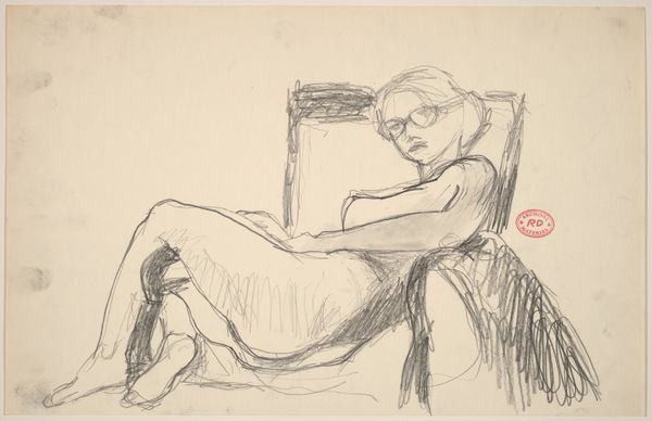 Richard Diebenkorn made this untitled drawing of a woman on a sofa with graphite on paper. I love the understated nature of graphite, its simplicity. It allows for such nuance, the soft smudging around her face, for instance. You can almost feel the texture of the paper, can’t you? The way the graphite sits on the surface, creating subtle variations in tone and depth. Look at the repeated lines on the pillow, how they create a sense of volume and form. The lines feel so tentative, so searching. It's like he's feeling his way around the subject, discovering it anew with each stroke. Diebenkorn had a knack for capturing the everyday, and making it feel profound. Think of Matisse and his line, or even Picasso, forever looking for the right way to represent the figure through the language of drawing. There’s so much to see here.