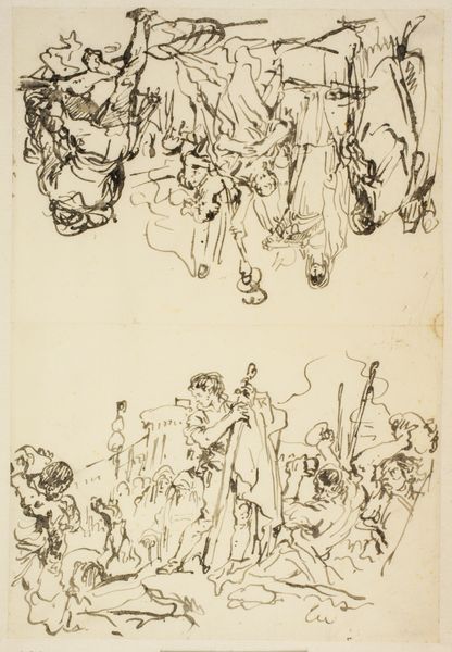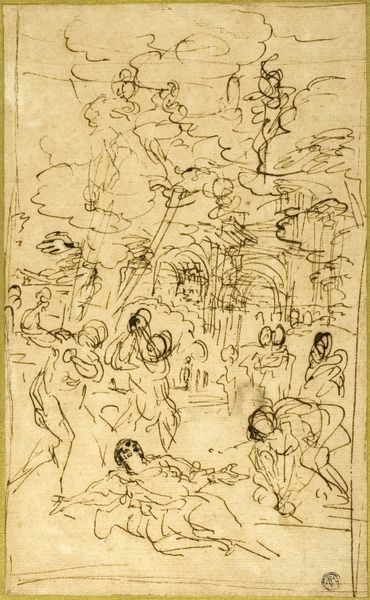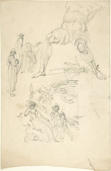 This sketch by Moritz von Schwind, commemorates the departure of the painter Becker, capturing the spirit of farewell through symbolic vignettes. Notice how the arabesque design weaves together scenes of artistic life and departure, framed by swirling floral motifs, echoing the cyclical nature of journeys and returns. A central figure poised for departure stands amidst a fountain, a symbol of both cleansing and renewal. The fountain motif is reminiscent of ancient Roman fountains, places of gathering and departure, and reappears throughout history in various forms. Consider Bernini's fountains in Rome—monumental displays of water and stone, embodying power and the life-giving force of water. Here, the fountain is a more intimate, personal symbol, representing the artist's transition and the emotional currents of farewell. The intertwining of classical symbols with personal narrative speaks to our shared human experience, a powerful force engaging viewers on a deep, subconscious level. The sketch resonates with an archetypal pattern of departure and return, symbolizing the continuous evolution of life and art.