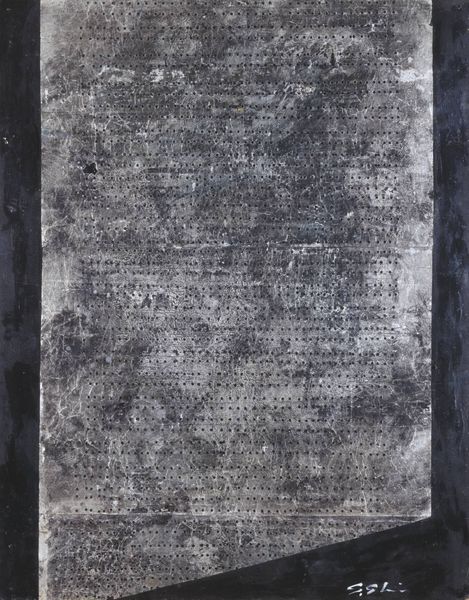 May Heaven Preserve You from Dangers and Assassins is a large, mural-sized canvas with the remains of advertising flyers collaged across its surface. It is one of a number of works made by the artist since 2009, characterised by a palette of black, white, silver and grey tones, which feature what he calls ‘merchant posters’ (there is no official name for these often hand drawn notices). These advertising flyers are taken from Bradford’s neighbourhood in Los Angeles, where they are typically affixed to the hoardings surrounding abandoned and derelict buildings. May Heaven Preserve You from Dangers and Assassins specifically features flyers selling pest control services (the word ‘BUGS is repeated across the central portion of the canvas). Like others in this body of work, such as When It Stops Snowing, which is made from advertisements that sell the facility to ‘receive calls on your cell phone from jail’, the work carries an underlying statement about the social circumstances of the target audience for these ads. Bradford is interested in the manner in which the changing notices indicate the altered circumstances that the local population experiences, and the way in which the urban fabric can be ‘read’ through this layering of signs. Although these works have a surface similarity with the work of twentieth-century European ‘affichiste’ artists such as Raymond Hains (1926–2005) and Jacques Villeglé (born 1926, see for example Jazzmen 1961, Tate T07619), Bradford is less concerned with the proliferation of commercial imagery than with the socio-political clues that his materials contain.