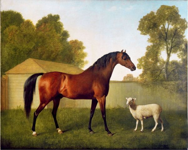 George Stubbs created "A Bay Hunter With Two Spaniels," a 68.6 by 59.1 cm oil painting now held in a private collection. Here, the composition balances the solid form of the horse with the frolicking spaniels, creating a dynamic interplay between stillness and movement. Stubbs’ meticulous brushwork captures the sleek coat of the horse, juxtaposed with the soft, feathery fur of the dogs. This contrast in texture adds a tactile quality to the scene, engaging our senses. Stubbs, known for his scientific approach, presents the animals with anatomical precision. The structured depiction of the horse challenges conventional portraiture by emphasizing its physical presence over symbolic representation. The painting invites us to consider the relationship between humans and animals in a changing world. While ostensibly a pastoral scene, the formal treatment of the subjects elevates them beyond mere decoration, making the artwork resonate with larger themes. Stubbs' precise forms question our fixed ideas about nature, culture, and art itself.