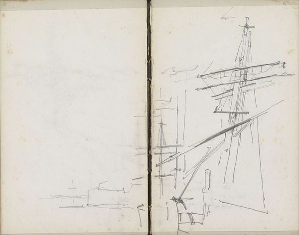 George Hendrik Breitner sketched "Bouwterrein in Amsterdam" using graphite on paper, presenting a raw, immediate view of urban development. The composition is divided, with the left side dominated by the skeletal structures of a construction site. Breitner uses sparse lines to capture the dynamism of a city in flux. The drawing teeters between representation and abstraction; structural elements are suggested rather than defined, creating a tension that mirrors the instability of the modern urban experience. This approach reflects a semiotic shift, where the sign defers meaning and embraces fluidity. The drawing challenges traditional notions of perspective and stability. It offers not a solid, defined structure but a network of lines that invite the viewer to participate in constructing the image. It reminds us that our understanding of the urban environment is always provisional, always under construction.