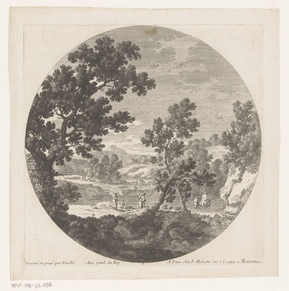 This landscape etching showing two men in an open space was created by Nicolas Perelle in France in the second half of the 17th century. At the time, landscape art was becoming increasingly popular, but this image isn't just a straightforward depiction of nature. The "Avec privilege du Roy" inscription tells us that Perelle enjoyed royal patronage, effectively making him a cultural producer within the court of Louis XIV. Note that Perelle's print was published in Paris. How, then, does the image construct meaning? Well, landscape prints such as this helped define France's national image, emphasizing its beauty and order and extending the King's domain into the realm of art. To better understand the historical and cultural context of this piece, we might look at other landscape prints from the era, royal records, and the correspondence of artists and patrons. The meaning of art always depends on its moment.
