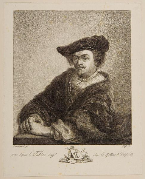 Editor: Here we have Moses ter Borch's "Portret van Rembrandt," created around 1660, using charcoal. It has a direct, almost confrontational quality to it. How do you interpret this portrait? Curator: This image captures Rembrandt late in life. Note the deep shadows, the intense gaze. It prompts reflection on the societal pressures faced by artists, particularly concerning patronage and the evolving tastes of the Dutch Golden Age. Editor: Societal pressures? Could you explain? Curator: Rembrandt's later years were marked by changing artistic styles and financial difficulties. His direct style didn't always align with the preferences of the wealthy merchant class that often commissioned portraits. This drawing perhaps reveals an introspection born from those challenges. Consider the weight of representation, of living up to external expectations, and how that might affect artistic expression. Do you think that’s fair? Editor: That is a great point. It gives so much context to the feeling this portrait inspires. The weight of living to create art when life pushes you down. Curator: Precisely! We should question the systems that influence artistic creation, acknowledging how class, economics, and cultural shifts affect individual artists. Think of how it resonates today, the gatekeepers in art, and the art world in general. Editor: Absolutely. Looking at this piece through that lens really highlights the social and financial constraints that might have shaped Rembrandt's life. It certainly encourages me to see historical art as not just beautiful, but a conversation about so many themes relevant today. Curator: Exactly! It's about using the past to inform our present and to continue advocating for a more equitable future for artists.