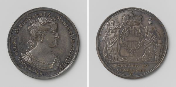 Theodorus Victor van Berckel created this silver medal to commemorate the arrival of Joseph II, the Holy Roman Emperor, in the Austrian Netherlands. The image offers insights into the way rulers sought to present themselves and their relationship to the territories they governed in the late 18th century. On one side, we see a profile of Joseph II, his name inscribed around the edge. On the reverse, a female figure, representing “Felicitas Belgii” or “Belgian Happiness,” holds a caduceus and a cornucopia, symbols of peace and prosperity. The medal subtly promotes the idea of a benevolent ruler bringing wealth and stability to the region. This was a period of significant social and political change. The Enlightenment ideals were challenging traditional hierarchies, and rulers like Joseph II had to carefully manage their image to maintain legitimacy. Medals like this were a form of propaganda, circulated to shape public opinion. Historical archives, including pamphlets, newspapers, and official documents, provide essential context for understanding the medal's original meaning and impact.