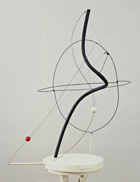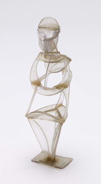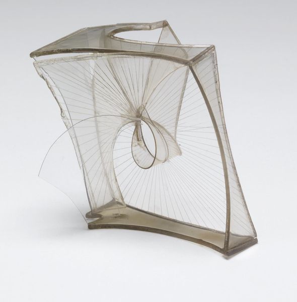 Editor: Here we have Naum Gabo's "Model for the Esso Project, Radio City, New York," its date is unspecified. It's a fascinating sculpture made with what appears to be plastic and metal. It's so delicate and precise, but also looks very modern. What do you see in this piece? Curator: Well, it's fascinating to consider this sculpture as a "model." The labor and materials involved in the actual Esso project would have been immense. This piece allows us to think about the relationship between the artist's hand, industrial production, and corporate consumption. What was Gabo suggesting about the future of art and industry? Editor: So you're saying it's not just about aesthetics but also about the social implications of the materials and the project itself? Curator: Precisely. It's a commentary on the means of production and the blurring lines between art and industrial design. Editor: That gives me a whole new perspective. I was only thinking about form and space! Curator: Materiality and context always reshape our understanding.