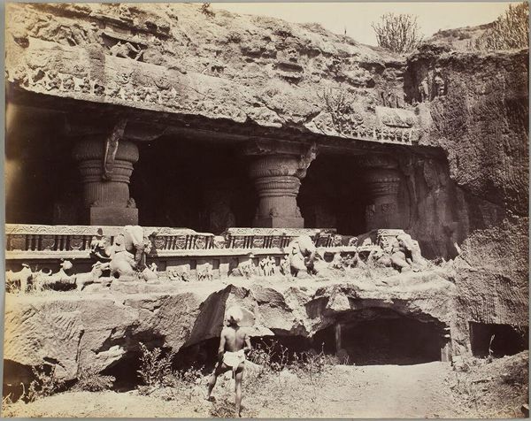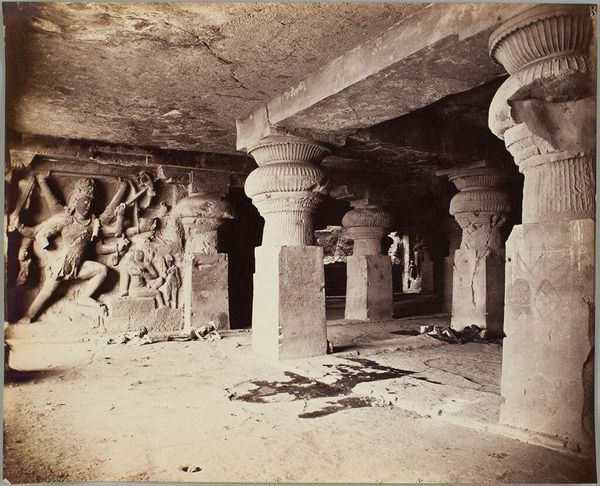 This photogravure by Clifton & Co. captures the Linga Shrine in the Elephanta Caves and feels like a study in texture and light. The way the light catches on the rough-hewn stone, it’s as if the artists were feeling their way through the dark, chiseling out shapes from the void. I’m drawn to the columns, how they rise from the ground, worn and softened over time, yet still holding up the weight of the mountain. Look closely and you can almost see the hand of the sculptor in every mark, every groove. The figures themselves are shadowy and mysterious, emerging from the rock face like half-formed memories. It reminds me of the work of artists like Eva Hesse, who embraced the imperfections and irregularities of their materials. It is a celebration of the process, the physicality of making, and the beauty of impermanence.