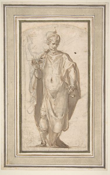 Editor: Here we have a fascinating architectural study, "An Architectural Detail: A Herm Figure Placing or Removing a Column from Under an Entablature," an anonymous work from between 1700 and 1800. It’s rendered in ink, watercolor, and colored pencil. I'm really struck by the tension it creates - this figure, almost trapped between the column and the entablature. It feels precarious, almost Sisyphean. What do you see in it? Curator: Precarious is a perfect word! It breathes with that pushing-against-the-world weariness, doesn't it? But there's a bit more to it. See how the herm, that figure supporting the architecture, seems to be *either* placing or *removing* the column? The ambiguity tickles me. Is he building up or tearing down? Perhaps it is all a little bit of both. A perpetual state of creation and destruction. Don't you find that thought just lovely? Editor: That’s a cool thought. Is that tension deliberate, or is it just a quirk of the drawing? Curator: I lean toward deliberate, a whisper from the artist. Architectural drawings of the time, while meant to document, weren't always cold, objective records. They often played with ideas, philosophies, or even anxieties through the classical forms. The figure looks strained by its efforts, don’t you agree? He is at once both architect and Atlas holding up the world with aching muscles. What would you title this work? Editor: Wow, I see what you mean! “Aching Muscles,” maybe? It's less descriptive but gets to that feeling you described. This was more insightful than my last architecture history class, I must admit. Curator: All great works hide their greatness within their hidden details. Keep your eyes, and heart, open. They will show themselves eventually!