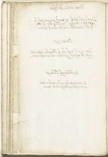 Editor: So, here we have Gesina ter Borch's "Classical Aphorisms in Mirror Image," from about 1652 to 1680. It's ink and watercolor on toned paper, and it almost feels like peering into someone’s secret diary. It gives me a peaceful, contemplative vibe. What jumps out at you when you look at this work? Curator: Well, it’s a looking glass into Ter Borch’s mind, isn’t it? What I love most about it is its inherent duality – these maxims, reflected as though staring back at you from another plane. Did she feel like the truest wisdom always contains its own reflection? Is that a bit heavy? Probably! The ink dances on the page, a mirrored performance… almost a duet between thought and reversed-thought. Do you think she actually wrote them looking in a mirror, or just rendered them afterward? Editor: I hadn't thought about that, but physically writing them backward, that's dedication! It makes the viewing experience so much more interactive too. Curator: Exactly! The challenge and reward are heightened! Imagine the control it must have taken to craft the flourishes backwards like that! To me, the toned paper itself breathes with time, whispering secrets from centuries past. How does the imperfection play into your sense of "peaceful vibe"? Editor: It makes it feel more human and intimate. Like she wasn't afraid to let us see the raw, unedited thoughts. It's oddly inspiring to realize these aren't perfect engravings. Curator: I agree completely, that raw quality! Imperfection embraced is so much more beautiful, isn't it? Well, I feel I know dear Gesina just a tiny bit better now! Editor: Me too! I'm definitely going to spend more time deciphering those mirror-image aphorisms.