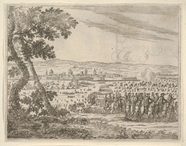 Bartolomeo Fenice created this print, "Francesco I d'Este Sets Out for the Seige of Cremona..." The image is part of a larger book which served to construct and disseminate the Duke's identity. Prints like this one were more than just illustrations; they were powerful tools used to shape public perception of rulers during a time of immense social and political change. Fenice's depiction of Francesco I d'Este as a triumphant military leader contributes to the narrative of the ideal Christian prince. Consider how the imagery of military might intersects with the concept of religious authority. The Duke's actions are framed as not only strategic but also divinely sanctioned, reinforcing the idea of a leader chosen by God. Through this lens, we can explore the complex interplay between power, religion, and identity in early modern Europe. It serves as a reminder of how deeply intertwined personal identity is with broader cultural narratives.
