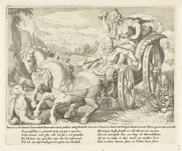 Editor: Here we have an engraving titled "David onthoofdt Goliat," placing us somewhere between 1630 and 1702. The piece is part of the Rijksmuseum's collection and credited to an anonymous artist. The scene, depicted in sharp, precise lines, seems chaotic and dramatic. What do you see in this piece, particularly regarding the way the narrative is presented? Curator: Oh, that slice of savage history served up as art! Well, my eye is drawn to the theatrical flourish. Think about it—here's David, a young sprout, hacking away at the giant Goliath's neck. He's like a zealous gardener pruning a rather oversized, ornately armoured weed! But the anonymous genius who created this...it’s got that whole Baroque drama dialled up to eleven. Everyone is squashed into the picture. Aren't we all in life anyway? You’ve got warring crowds in each corner adding weight and momentum like in the wings of an epic play. Is there anything about the staging that catches your attention? Editor: The crowds definitely amplify the drama. The foreground really highlights David's act, while the armies in the background seem secondary, more like witnesses than participants in this pivotal moment. I think my attention drifts because the landscape flattens in a strange way. It makes the scene seem dreamlike or staged. Curator: Ah, that's clever! It *is* dreamlike! Yes, maybe our engraver isn’t trying to recreate reality with precision, so we shouldn’t try to apply modern expectations to it, perhaps, it is inviting us into this symbolic landscape where ideas are grander and emotions run wilder! Do you get a sense of the artist taking a certain pride in detailing all those teeny tiny soldiers with spears! Almost playful in tone! It almost feels like a satire to some degree! Editor: I see what you mean. Thank you. I guess I hadn't fully appreciated the theatrical element. Now that you’ve mentioned it, that "grandness" helps to appreciate it, and brings another dimension.