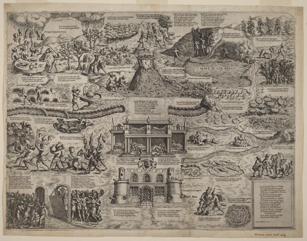 This print, made by Étienne Dupérac in the late 16th century, depicts a naval battle rendered in precise detail through the process of etching. Consider the labor invested in creating this image. The fine lines, achieved by incising a metal plate and then using acid to bite away the exposed areas, speak to Dupérac’s skill and the printmaking techniques of his time. This wasn't just about replicating an image; it was about transforming a scene into a reproducible form. Note how the material – the hard metal of the plate – influences the visual texture, creating a sense of depth and drama. The contrast between light and shadow, achieved through careful hatching and cross-hatching, brings the chaotic energy of the naval engagement to life. In a period defined by the rise of print culture, works like this facilitated the wider dissemination of knowledge and imagery. They reflect a growing awareness of the past, and a fascination with spectacle. Dupérac's print invites us to contemplate the intersection of history, technology, and artistic expression, and the cultural values that shape our understanding of the world.