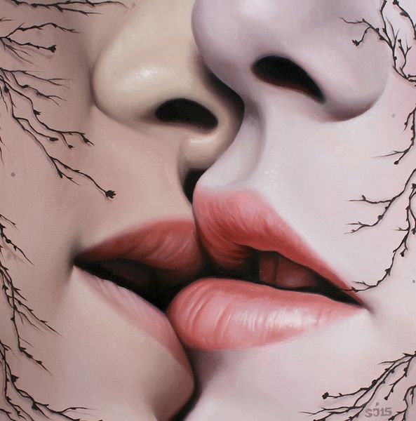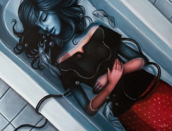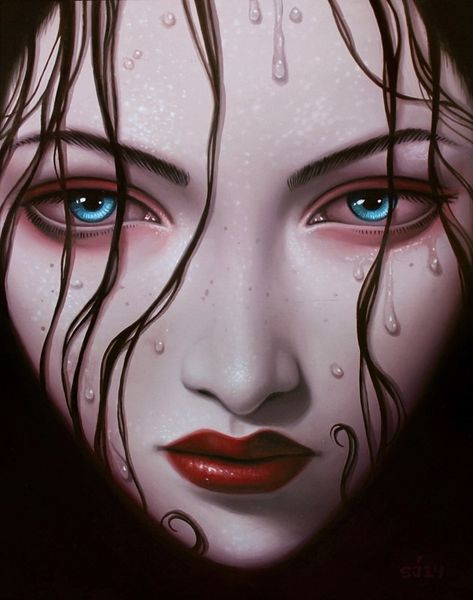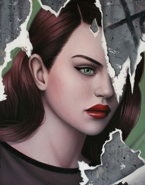 Sarah Joncas painted "Toxic" using oil paint. The striking realism of the face is carefully built up through layers of glazing, while the black drips are boldly applied. Oil paint is traditionally associated with fine art, but Joncas’s technique also reminds me of commercial illustration. Think of make-up advertising, which employs similar strategies of hyper-realism to convey both allure and fantasy. The subject matter too is significant. Joncas is known for portraying young women in a state of in-betweenness, on the cusp of adulthood. The dripping black paint in “Toxic” could be read as a symbol of pollution, but also as a sign of transformation, a kind of self-conscious decay. By bringing together different associations of material, making, and subject, Joncas challenges us to think about the toxic effects of modern life on both our bodies and our minds.