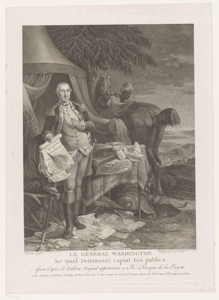 This portrait of George Washington was produced by Thomas Cheesman using a technique called mezzotint. Unlike engraving, where lines are cut into a plate, mezzotint begins with roughening the entire surface to create a dense, dark tone. The artist then works ‘from dark to light,’ burnishing areas to create lighter values. Look closely and you can see the soft, velvety texture characteristic of mezzotint. The process allowed for subtle gradations of tone, lending a sense of depth and realism to the image of Washington. But there’s also a layer of social meaning embedded in this printmaking technique. Mezzotint was a labor-intensive process that required specialized tools and skills. Prints like this were luxury goods, demonstrating technical virtuosity, and intended for a well-to-do audience. By focusing on the materials and the making, we can appreciate how Cheesman's print operates not just as a portrait, but as a showcase of craft and a signifier of status. It’s a reminder that even seemingly straightforward images are shaped by the labor and social context of their production.