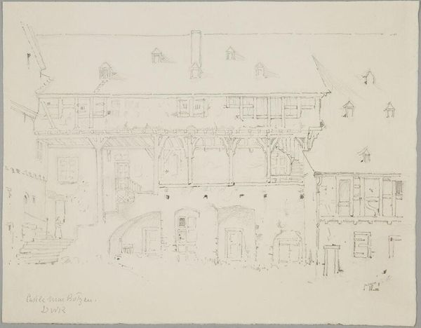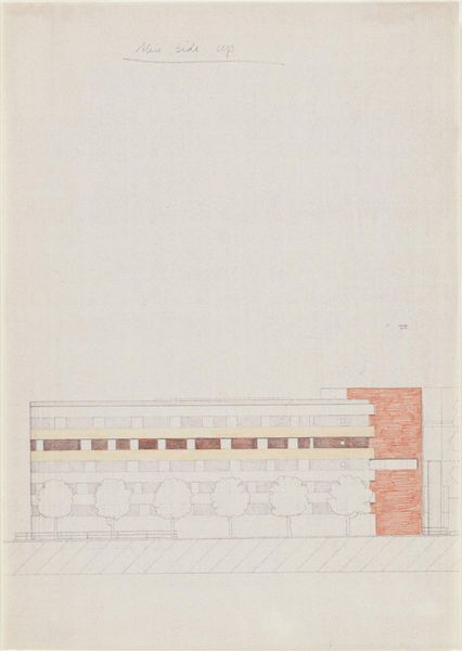 Here we see Josef Hoffmann's architectural drawing, likely rendered with graphite on paper. The symmetrical facade immediately brings to mind classical temples, echoing a longing for order and harmony, as well as ideas of permanence. Consider the repeated motif of the square windows. Squares, often seen as symbols of stability and rationality, appear throughout various historical periods. We may also see the grid reappearing as a larger pattern in city planning or even artistic compositions. The subconscious desire for order is ever-present, isn't it? However, the regularity of the grid is juxtaposed by arched openings. These softer lines may evoke a sense of humanism and the passage of time. This contrast embodies a dialogue between Apollonian rationality and Dionysian emotion, a balance our minds constantly seek. In essence, the facade becomes a canvas where collective memories intertwine with our deepest emotional aspirations.
