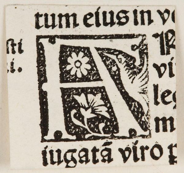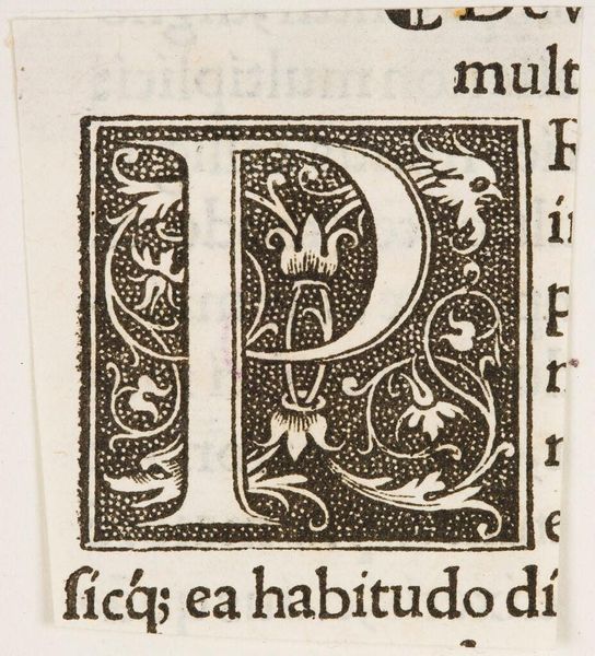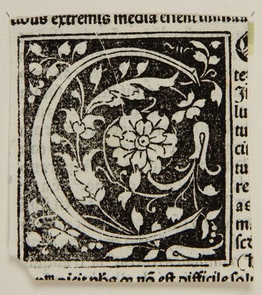 Curator: Here we have "Letter O (?)," an intriguing, small-scale woodcut. Its creator is unknown, but it resides here at the Harvard Art Museums. I find it rather striking in its graphic simplicity. Editor: My first impression is of contained growth. There's a tension between the organic vine and leaf forms and the rigid structure of the letter itself, or what seems to be the letter "O." Curator: Exactly! The letter's form is suggested rather than explicitly drawn, typical of early printed initials used to start chapters. The surrounding foliage, likely grapes, speaks to themes of abundance. Editor: This piece feels deeply connected to the cultural and intellectual shifts of the printing revolution. Whose voices did this new technology amplify? Who was left out? Curator: A relevant point. While the artist is anonymous, the existence of this woodcut shows the burgeoning industry of print and its democratizing potential, even if limited by access and literacy at the time. Editor: Thinking about the materials and techniques, it's amazing how much detail they achieved with a simple woodcut. The crisp lines and repeating patterns create a sense of both beauty and accessibility. Curator: Indeed. Reflecting on the artwork’s legacy, it highlights how something as simple as a letter can hold complex narratives about society. Editor: And it reminds us that even the most seemingly straightforward images can conceal layers of historical meaning and political implications.