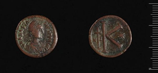 Editor: Here we have a copper coin, a Copper Assarion of Andronikos II, held in the Harvard Art Museums. It’s quite small and worn, making the details hard to discern. What can you tell me about its historical significance? Curator: Well, currency is more than just money; it's a propaganda tool and a historical record. This coin gives us insight into the reign of Andronikos II, reflecting the Byzantine Empire’s economic and political state at the time. The imagery, though faded, would have been carefully chosen to project power and legitimacy. Consider how this small object communicated messages to a broad public. Editor: That’s fascinating. I hadn’t considered the power of such a small object. It makes me wonder about how accessible such messaging was, considering literacy rates at the time. Curator: Exactly! The images become crucial. What do you think these images might represent? Editor: It’s hard to tell, but knowing that it’s from Andronikos II, it was probably something symbolic of his reign. Thanks, I will look closer. Curator: Likewise, it was great thinking aloud with you.