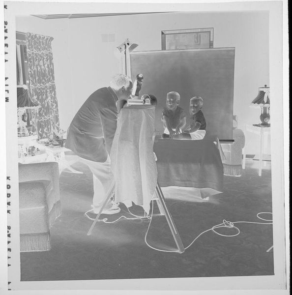 This photograph by Paul Gittings captures a photographer arranging a bride and groom for their wedding portrait. The image is like a backstage pass to a moment of constructed reality. What I love is how Gittings pulls back the curtain, showing us the tools and labor behind the illusion. Look at the array of equipment: the large format camera, the flash stand, and the various assistants hovering around. It's a reminder that even the most seemingly spontaneous images are often the result of careful planning and execution. The negative’s tonality also really throws me! I usually think of photography as capturing the real, but here, Gittings captures artifice, not just in the setup of the shot, but in the photographic process itself. This reminds me of Jeff Wall's staged photographs, which similarly blur the line between documentary and fiction. Ultimately, this photograph encourages us to think about the nature of representation and the ways in which images shape our understanding of the world.