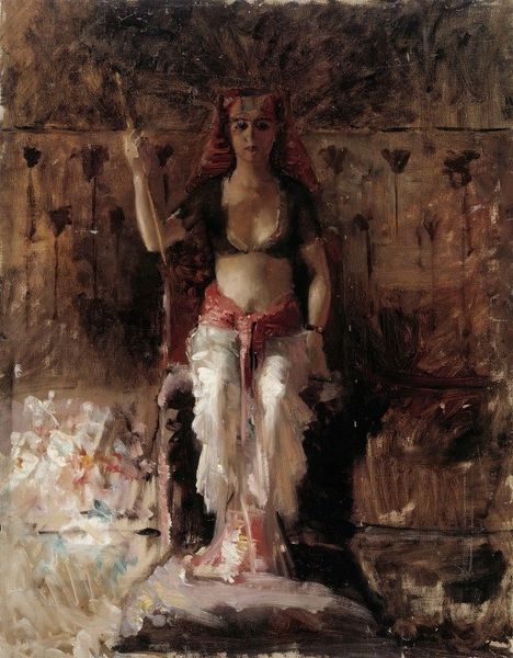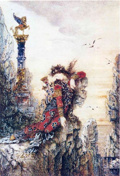 Gustave Moreau crafted "An Arabian Singer" using watercolor, a medium that lends itself to the fluid, dreamlike quality we observe. The composition centers on the singer, yet the architectural details are equally prominent, creating a space that is both exotic and indefinite. The watercolor technique allows colors to blend and bleed, which destabilizes clear form and challenges a fixed, stable reality. Note how the singer’s figure merges with the background, blurring the lines between the individual and the environment. This blending could be interpreted through the lens of poststructuralism, where fixed identities are questioned, and meaning is seen as fluid and relational. Moreau uses semiotic codes of Orientalism, but the indistinct forms disrupt any easy reading. This creates a sense of mystery, inviting viewers to question their own perceptions and cultural assumptions. The fluidity challenges fixed meanings and encourages ongoing interpretation.