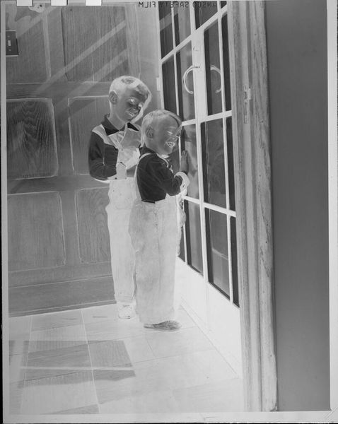 Editor: Here we have an untitled silver gelatin print by Lucian and Mary Brown, depicting a woman holding a child. Given the setting, I'm curious about its story. What do you see in this piece? Curator: I see a document of labor, both the labor of photographic production itself and the unseen domestic labor. The materials, the silver gelatin, the photographic process—it all speaks to a specific time and technology, revealing how images were made and circulated. This image could be a common family portrait or part of a larger project. Consider who had access to these technologies at the time and how that shaped visual representation. Editor: That's interesting to consider. Thank you for that insightful perspective. Curator: My pleasure. It's a reminder that even simple images carry complex layers of production and social context.