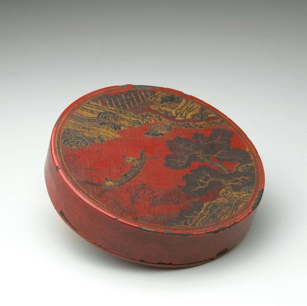 Curator: Isn't that captivating? At first glance, this decorative box gives off a quiet air of contemplation. I'm immediately drawn to the delicate rendering of the figures on its lid. Editor: It’s small, yet demands attention. This is a 19th-century Japanese box created by Ganshosai Shunsui. Its function was likely to hold incense or sweets for the tea ceremony. More specifically, the box portrays the Rokkasen. Curator: Ah, The Six Court Poets! That explains the beautifully posed figures. There's a depth and subtlety to the lacquered surface, an almost dreamlike quality. It looks heavy, in the sense that it holds so much quiet feeling within itself, like it possesses the stories it depicts, secrets it only reveals slowly, to those patient enough to study it. Editor: Absolutely. And their poetry wasn’t apolitical. The Rokkasen emerged during the early Heian period, a time of aristocratic flourishing, yes, but also political intrigue and burgeoning class stratification. Their works often subtly questioned social norms. It’s no accident that these figures are selected as decoration; they speak to cultivated taste. Curator: I wonder if its owner used to carry it around, a beautiful object whispering subtle challenges into the ear of a conservative era. Imagine carrying a poem, in a box! The detail— the flow of their robes, the expressions on their faces – it pulls you in. It's an invitation, really, to wander back into a world of poetic expression and quiet resistance. Editor: And to consider how those gestures, those modes of resistance, translate into our present moment. Who are the voices and poets we elevate, and what statements are *they* making, either explicitly or implicitly? The selection, curation, and elevation of certain forms of artistic expression *always* says something about our social values and who benefits from them. Curator: You know, looking at this piece has sparked so many connections in my mind, to quiet defiance and hidden beauty, so typical in decorative objects like this. Thank you. Editor: Likewise. Seeing it framed within this history adds new layers of understanding. It serves as a good reminder that art never exists in a vacuum.