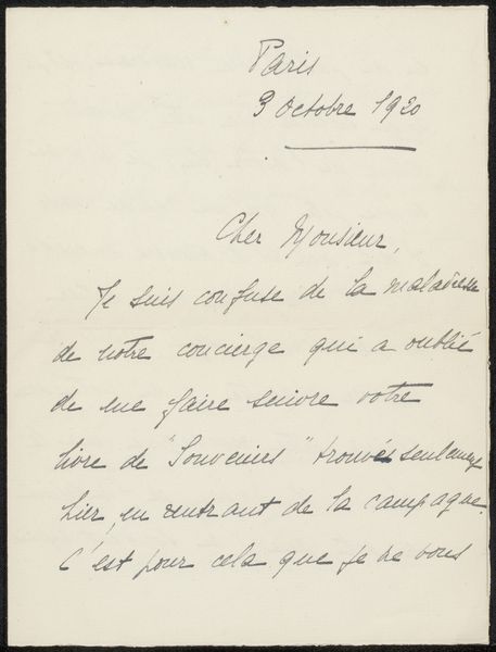 This letter to Philip Zilcken was written in Paris, in 1920, by Elissa Rhaïs. It's funny, the deep violet ink almost seems to float on the surface of the page. Look at the way Rhaïs forms each letter, the loops and elegant lines, it's as if writing itself is a dance, a process. I love that you can see the hand so clearly here. The ink is thin in some places and darker in others, reflecting the pressure of her hand as she moves across the page, each word a kind of topography. There's a rhythm here, a kind of pulsing energy. The way she crosses the ‘t’s', almost like daggers, adds another layer of emotion, maybe a hidden strength or a subtle rebellion. It reminds me a little of Cy Twombly's scrawled lines or even the automatic writing of the Surrealists – a way of bypassing conscious thought and letting something more primal take over. Art is just a conversation, really, across time and space.