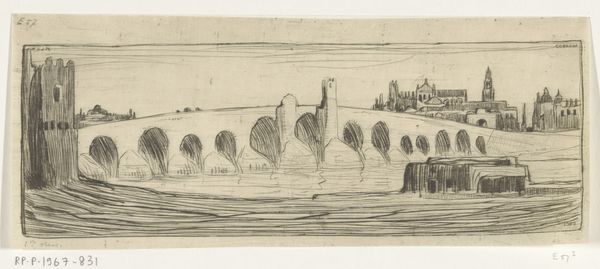 Curator: This etching, possibly from 1915, is entitled "Begrafenis van een priester in Benares," or "Funeral of a Priest in Benares," by Wijnand Otto Jan Nieuwenkamp. It's a somber piece. What do you make of it? Editor: Immediately, I notice the tonal range. The artist's achieved a rather impressive depth of field with minimal hatching. And the composition – the eye is drawn from the boats in the foreground to that hazy shoreline. Curator: Let's delve into Nieuwenkamp’s practice. His etchings, like this one, often served as illustrations for his travel writings. He wasn't just recording what he saw, but engaging with the socio-cultural landscape, particularly labor. The visible textures are due to his direct work with the metal plate. Editor: The subject matter gives it gravity, of course, but the formal elements create that overall mood. Look at the repetition of the boat shapes, how the lines of the water mirror the lines of the vessels themselves. It evokes a feeling of melancholy, a kind of floating grief. The artist truly masters line and form to emphasize the visual experience of sorrow. Curator: Absolutely. And consider the ritualistic aspect, made visually present via the repetitive labor of travel and ceremony. Think about what it meant to transport a body on water, in this specific locale at that moment. This artwork is less about aesthetic beauty, and more about conveying material reality, using prints to expose cultural processes that were probably still pretty exotic to European consumers. Editor: While I acknowledge the scene certainly offers a potent representation of cultural practices, I still contend the power rests significantly in the careful orchestration of visual components. Notice the human forms blurred and softened through the print's texture, which universalizes the emotion and the gravity. Curator: I can agree that the artist effectively employs his means of visual expression. However, I'd like to keep in mind that even decisions we analyze as artistic and aesthetic ones have an impact on larger networks of production and value and access to materials. Editor: I concede, it's quite amazing that this singular, intimate work encourages the grand sweep of our debate, both formally beautiful and grounded in material life.