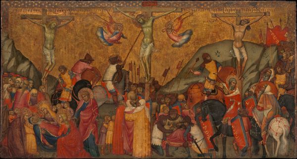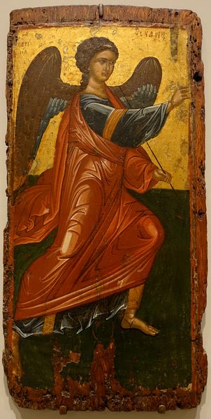 Editor: This is "The Annunciation of a Woman" by Harmonia Rosales, created in 2018 using oil paint. It presents a compelling reimagining of a classic scene. What immediately strikes me is the rich symbolism combined with what seems like a contemporary lens on the religious narrative. How do you interpret this work? Curator: From a materialist perspective, I'm drawn to Rosales's choice to use oil paint, a medium steeped in the Western art tradition, to challenge that very tradition. She is appropriating the means of production – oil on canvas, perspective, composition – to subvert and decolonize a visual language. Think about the labor involved, the hours spent mastering a technique historically used to uphold specific power structures, and now turned on its head. What does that appropriation of artistic labor signify to you? Editor: It makes me think about reclaiming a narrative, rewriting a history from a different perspective by adopting and adapting its visual language. The figures themselves, being Black, shift the power dynamic considerably. Curator: Precisely. The shift to Black figures disrupts the established iconography, inviting us to examine the cultural and social contexts that have historically shaped the Annunciation narrative. Consider the layers of meaning: the traditional symbolism, the act of painting itself as labor and resistance, and the cultural implications of representing traditionally white figures as Black. Editor: So, it’s not just about changing the figures; it’s about interrogating the entire system of art production and its historical biases. I see that the Ankh is also presented, can you talk more about that? Curator: This shifts away from a Eurocentric reading towards pre-Christian African artistic motifs and traditions. By centering African spiritual symbols Rosales is using the means of visual representation to speak to material reality through time. How does that connection make you feel? Editor: I see how the piece uses the familiar to make the viewer rethink traditional art's place and context. It is truly an original method that invites thinking. Curator: Absolutely. By considering process, material, and historical context, we reveal Rosales's complex and multifaceted commentary. I have found my appreciation enhanced.
