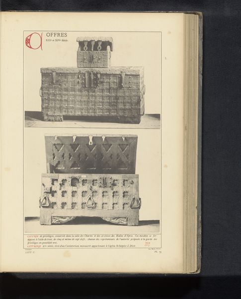 Curator: This fascinating image is titled 'Reproductie van twee prenten met ontwerpen voor tafels en krukken door Hans Vredeman de Vries.' The precise date eludes us, placing it before 1881. It's an intricate dance of line and form created through drawing and printmaking, including engraving. Editor: It has this wonderfully rigid, geometric aesthetic—a blueprint of Renaissance furniture, stark and almost mathematical. The repetition of forms is quite captivating; I'm struck by the density. Curator: Density is key. The engraving gives these architectural designs a distinct weight, despite being only lines on paper. Vredeman de Vries, deeply embedded in the Northern Renaissance, offered these not as mere decoration but as practical blueprints. His workshops likely relied heavily on this type of visual communication. Editor: The lines do indeed emphasize function, yes, but also suggest ornament. Look at the curlicues and the small volutes embellishing the table legs. Do those designs influence the structural integrity? Is there an interplay between form and function that elevates the design beyond pure utility? Curator: Absolutely, and considering this piece stems from a reproductive print, its own production speaks volumes. The creation and circulation of these design templates made high-style furniture accessible beyond elite circles. Craftspeople adopted, adapted, and disseminated these forms across wider social strata. The accessibility mirrors the democratizing aspects of the printing press itself. Editor: True, though it makes me wonder about the hierarchy implicit in its making. We have the master artist creating the original designs versus the engraver replicating them for mass consumption. Are the engravers celebrated or anonymous producers of somebody else’s genius? Is that line itself blurring as skill is exchanged? Curator: It's precisely that intersection—the interplay between artistic vision, mechanical reproduction, and its effect on social and cultural exchanges—that fascinates me most. Editor: And I see how it can reveal the inner mechanics of design principles. There’s an essential architectural beauty here that makes it captivating even divorced from its historical use. The formal interplay is delightful.