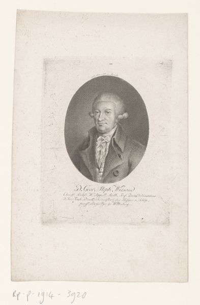 Editor: This is a portrait of Maximiliaan I Jozef, King of Bavaria, created by Johann Gottlieb Boettger in 1804. It looks like it's made from ink and engraving on paper. It’s very…stately, almost austere. What do you see in this print? Curator: For me, the key is understanding the production process and the materials used in making it. We have ink, engraving, paper: common materials, but consider the labor involved in the engraving process, turning what may have started as a drawing into a reproducible print. The use of print allowed this image of Maximilian to be disseminated widely. It connects directly to power: How does the process reinforce his image as a ruler? Editor: That's interesting. I was focused on the artistic skill, but thinking about it as a means of production changes things. So the artist, Boettger, is almost acting as a manufacturer here? Curator: Exactly. Think about the social context too. The rise of the printing press shifted the concept of the ‘original’ artwork. It wasn't about this single unique object, it's more about accessibility, reaching as many people as possible, thus communicating power. Where was this printed, and who controlled its distribution? Editor: That definitely gives me a different perspective. I was thinking about the sitter and the artist. Now I'm realizing the importance of the craft involved in making the engraving and the socio-economic factors. Curator: The intersection of art and material processes can highlight power relations, shifts in the idea of what makes "high art", and how labor is consumed. Editor: I never considered the material aspects of printmaking as such a direct part of understanding the message. Curator: Hopefully now you can see beyond the surface and recognize the tangible elements shaping our cultural understanding of even a king's portrait.
