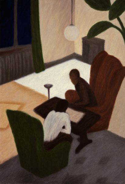Iwo Zaniewski created this painting, called "Supper," without giving us a date, leaving us to consider its cultural and social implications. The scene depicts two figures within a domestic interior. The foregrounded individual, back turned, sits at a table, while another figure is at the kitchen counter, possibly preparing a meal. What kind of social dynamic does this scene represent? The warm, muted tones create an atmosphere of quiet intimacy. Consider the setting. It suggests a space of everyday life, of domesticity, but its meaning is dependent on a range of social and institutional factors. The work opens up questions about the role of the artist in representing everyday life and the power of images to reflect and shape our understanding of social relations. To understand this work better, we can explore the artist's biography, his other works, and the art criticism of his time. By doing so, we can consider art as a product of its time, reflecting the concerns and values of its society.